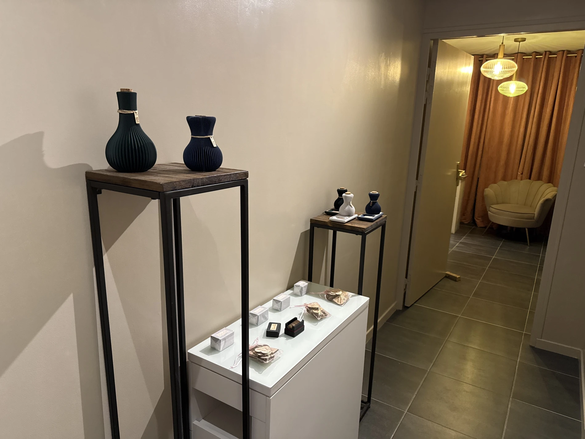 Voici les photos des articles que nous vendons d’un créateur en dépôt vente au salon.
